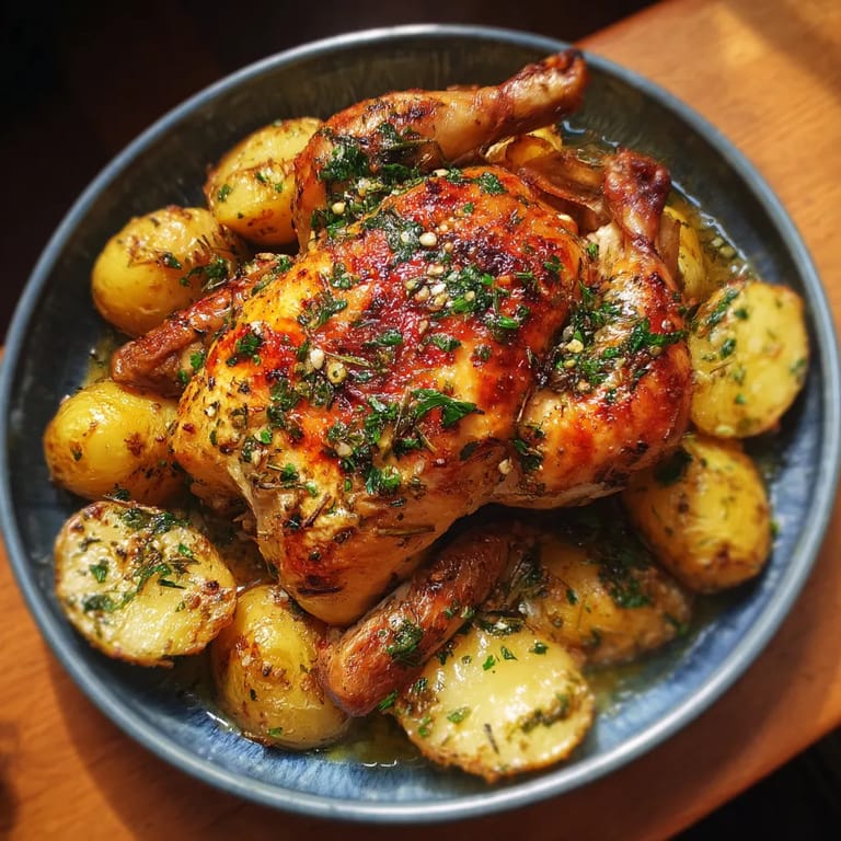 Guardar Este plato me recuerda a las cenas dominicales en casa de mi abuela. Ella siempre insistía en utilizar un pollo de corral y decía que el secreto estaba en frotar la piel con mantequilla antes de cocinar. He adaptado su receta a lo largo de los años, pero el aroma que invade la casa mientras se cocina sigue transportándome a aquellas tardes felices.