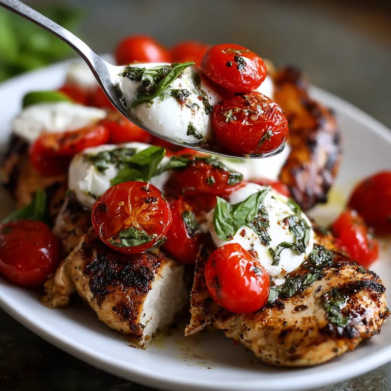 Guardar Esta pechuga de pollo a la parrilla con topping caprese es la forma más sencilla que conozco de convertir una cena entre semana en un plato sorprendente. El pollo jugoso se une con tomates dulces, mozzarella fresca y hojas de albahaca para lograr ese toque italiano clásico que nunca falla en la mesa.