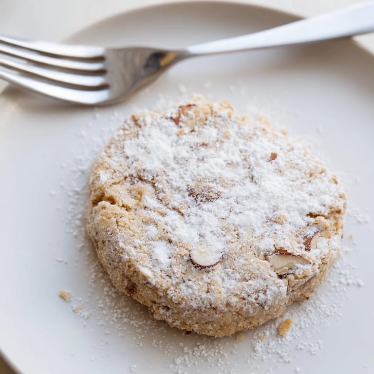 Guardar Un delicioso polvorón de almendra español que se derrite en la boca, con almendras y una textura rica y desmenuzable—simple y económico para cualquier panadero casero.