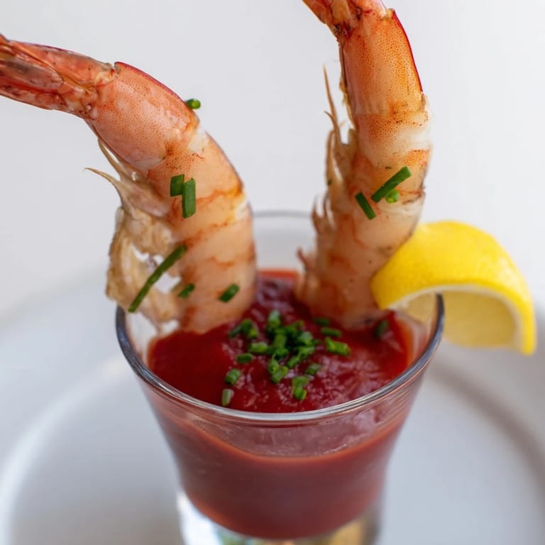 Guardar Encontré estos shooters de cóctel de gambas en una cena elegante donde todos estaban algo abrumados por la formalidad. Una amiga llevó una bandeja, y observé cómo desaparecieron antes de que pudiera probar uno. Más tarde, mientras limpiaba la cocina, decidí recrear la magia: gambas jugosas asomando sobre el borde de vasos de chupito, esa salsa picante y nostálgica que de repente hace que todo sea divertido de nuevo. Lo que comenzó como curiosidad se convirtió en mi aperitivo favorito para fiestas.