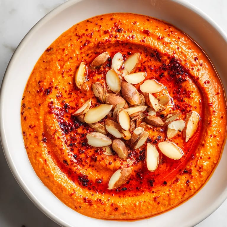 Sirve con pan rústico ligeramente tostado verduras al grill o incluso con camarones a la plancha Es una salsa espectacular para platos veganos y picadas de tapas españolas Me gusta presentarla en un cuenco bonito con almendras picadas por encima y un chorrito de aceite extra