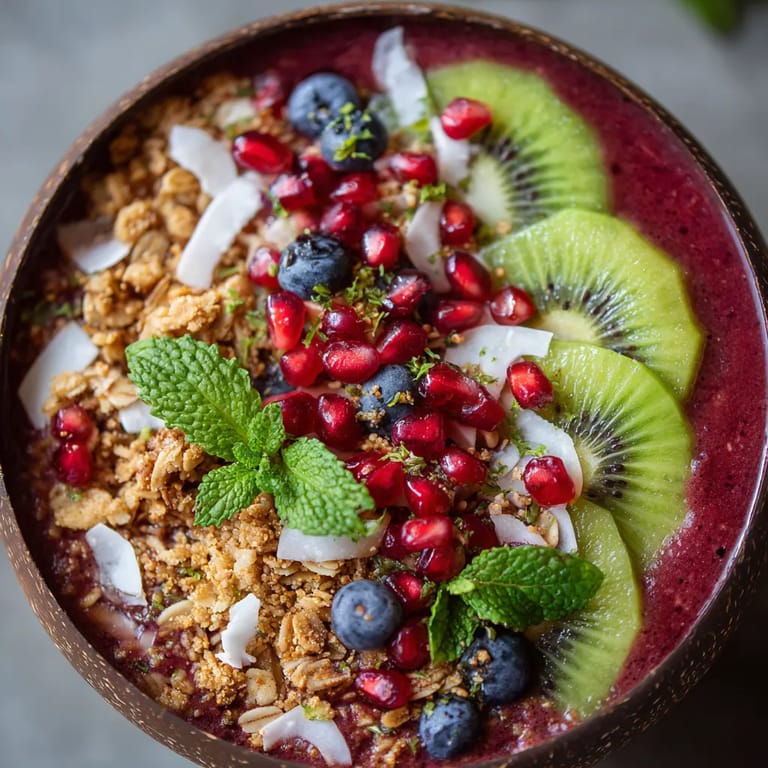 - Decora con hojas de menta fresca si tienes. Sirve de inmediato para que conserve su consistencia espesa y los toppings se mantengan crujientes.