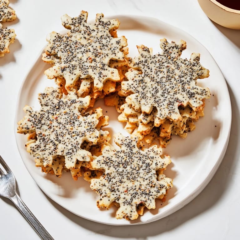Serve these gourmet snowflake crackers alongside triple-cream cheeses, tangy chutneys, fresh fruits, and your favorite spreads. They pair wonderfully with sparkling wine or crisp white wine to toast the festive season in style.