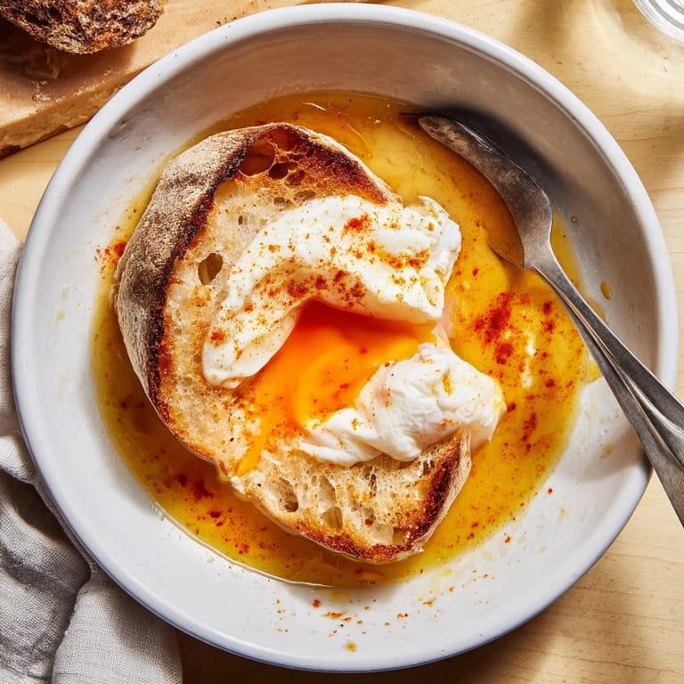 La clara debe estar firme pero la yema mantenida líquida; ajusta el tiempo de cocción según preferencia.
