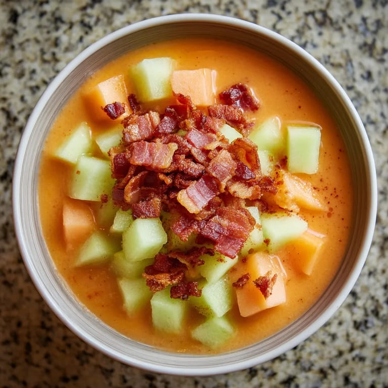 Guardar Esta sopa fría de melón con chips de jamón ibérico es la opción perfecta cuando quiero impresionar con un toque sofisticado pero sin complicaciones. Su frescura y contraste de sabores siempre sorprenden a mis invitados, especialmente en los días calurosos donde todos agradecen algo ligero y elegante.