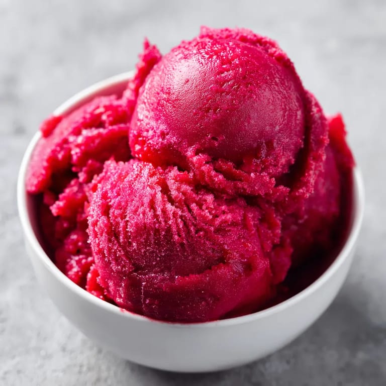 Guardar Este sorbete es mi recurso favorito cuando quiero un postre ligero y sorprendente sin empleo de heladera ni largas esperas. La acidez vibrante de la frambuesa combinada con el dulzor y exotismo del lichi crea un equilibrio refrescante que conquista en cada bocado. Es perfecto para días calurosos o para terminar una comida de verano con estilo y sencillez.
