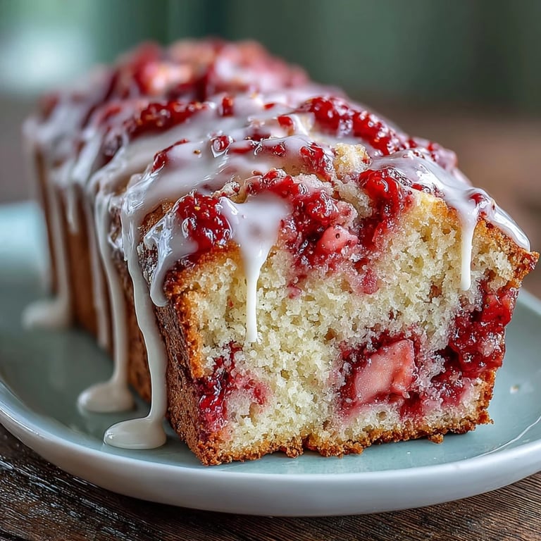 Se cocina una mezcla de fresas frescas con azúcar y jugo de limón hasta espesar, luego se incorpora suavemente en la masa antes de hornear para un efecto marmoleado.