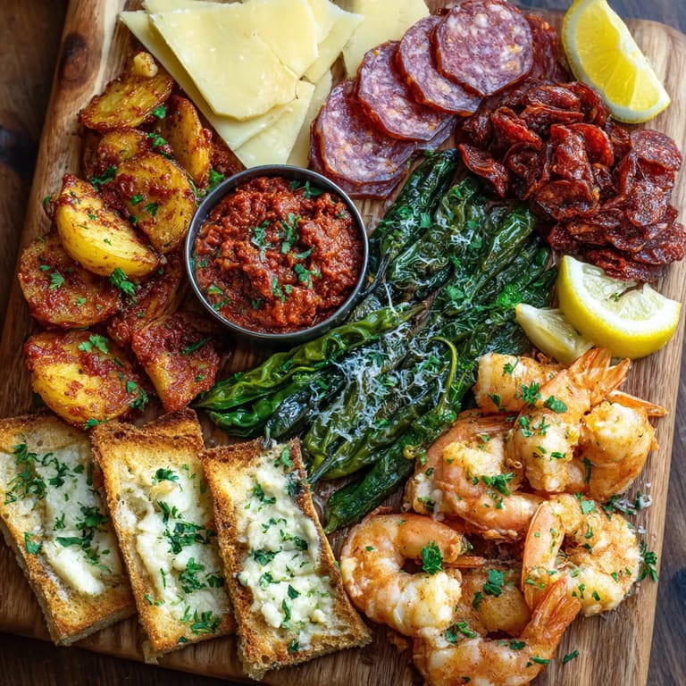 Guardar Este surtido de tapas zaragozanas es mi homenaje favorito a las animadas noches en El Tubo donde cada bocado celebra los sabores de Aragón y convierte cualquier reunión en una fiesta compartida. Ideal para sorprender a tus amigos o para una cena informal donde todos picotean un poco de todo.