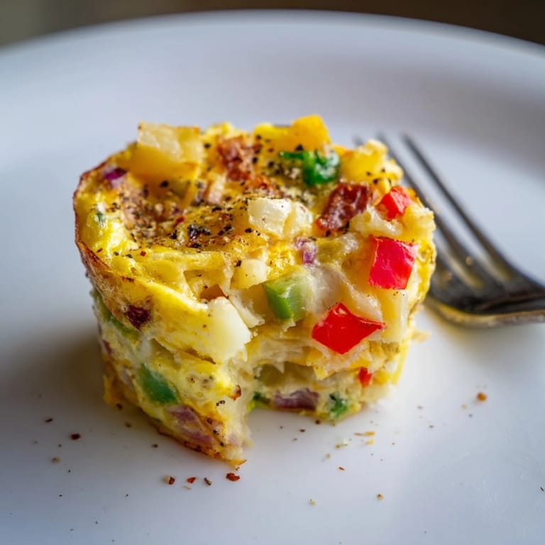 Guardar Una deliciosa variación de la clásica tortilla española, estos muffins salados para el desayuno están llenos de papas, huevos y verduras. Son perfectos para preparar con anticipación o para mañanas en movimiento.