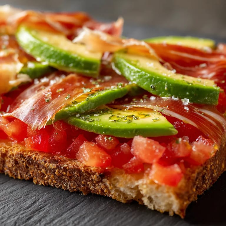 Guardar Estas tostadas mediterráneas se han convertido en uno de mis desayunos preferidos para días especiales o cuando quiero sorprender a alguien con algo sano y delicioso sin apenas esfuerzo. El contraste del pan rústico crujiente, el tomate fresco, el toque salado del jamón serrano y el cremoso aguacate elevan este clásico español a otro nivel y lo hacen ideal tanto para desayuno como brunch.