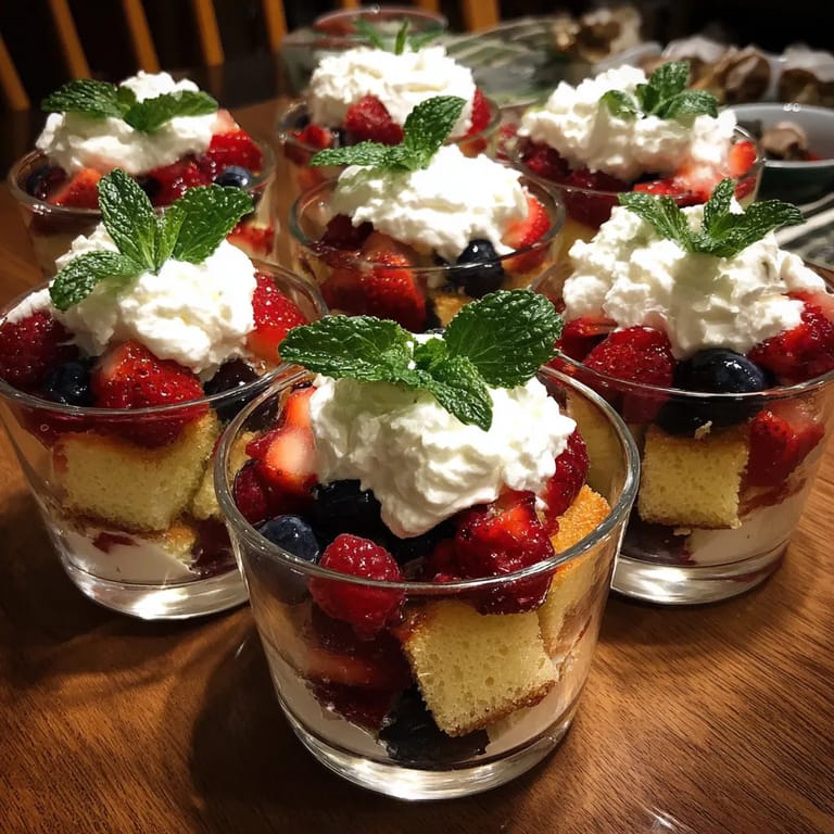 Guardar Estos cups de trifle con berries son una de mis formas preferidas de celebrar la llegada del verano en familia. En minutos se arma un postre esponjoso con capas de pastel suave, crema batida y fruta fresca. Ideal para reuniones o picnics porque es fácil de porcionar y transportar. Además, se ve precioso en vasos individuales y siempre desaparecen primero en la mesa.